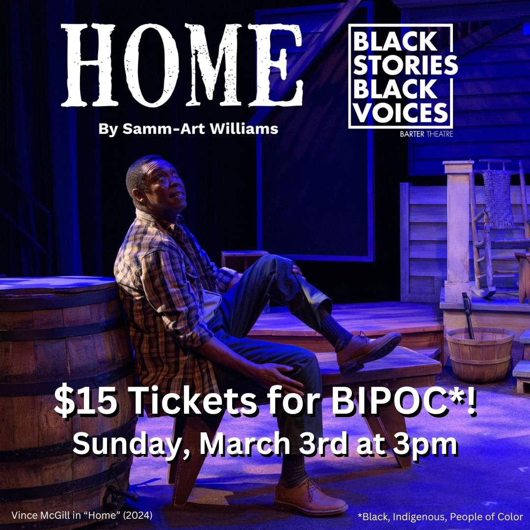 In the spirit of inclusivity and accessibility, our Black Stories Black Voices initiative is proud to offer $15 tickets to all BIPOC individuals during our 3pm matinee of HOME on Sunday, March 3rd. Join us at Barter’s Smith Theatre for a wonderful production, followed by a special BSBV Community Event: GROWING THE LEGACY.